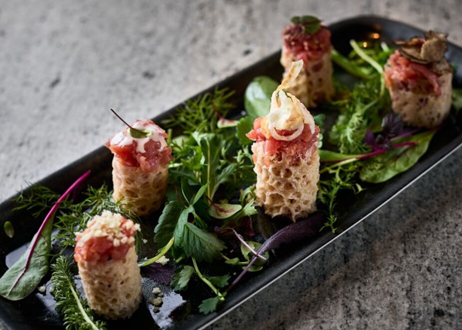 Il giovane chef ha pensato anche ai clienti che cercano un piatto leggero per spezzare la fame, e ha elaborato un menù estivo concepito appositamente per l’AMA Bistro, l’elegante caffetteria, bar e lounge di AMA Stay. Il trait d’union fra le portate è indubbiamente la freschezza, assieme al desiderio di presentare una carta giovane e cosmopolita che offre Poke (le tradizionali insalate hawaiane a base di riso, a cui si possono aggiungere gli ingredienti più disparati) e aperitivi accompagnati da finger-food, senza tralasciare pietanze a base di carne, come carpacci e roast-beef.