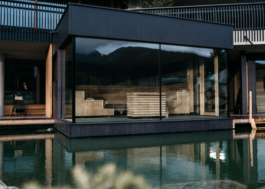La filosofia di ospitalità della famiglia Nestl si fonda su 5 valori: la Consapevolezza di un approccio responsabile e rispettoso verso gli altri, il Coraggio di mettersi alla prova, la Passione che porta a sviluppare i propri talenti, il Legame che unisce una famiglia o una coppia e la Serenità del tempo di qualità trascorso insieme. Queste 5 parole chiave danno il nome ai 5 signature aufguss pomeridiani nella sauna adults-only con vista panoramica. Consapevolezza è un’esperienza rilassante e antistress, grazie alle essenze di mirto, limone e finocchio. Coraggio è un aufguss energizzante, con gli aromi di abete bianco, pino cembro, litsea e il suono della sfera di cristallo, con frequenza 432 hertz, che permette di ritrovare la connessione con la natura circostante e con il proprio io. L’aufguss dedicato al terzo principio, Passione, è un’esperienza rinvigorente con aromi di ginepro, limone e menta piperita, la “ice experience” e il massaggio linfodrenante, che stimolano la circolazione sanguigna e linfatica. Legame è un aufguss rilassante, con le essenze floreali di geranio rosa, ylang ylang e garofano. Infine, Serenità è un’esperienza di meditazione energetica in sauna al profumo di incenso e lavanda.