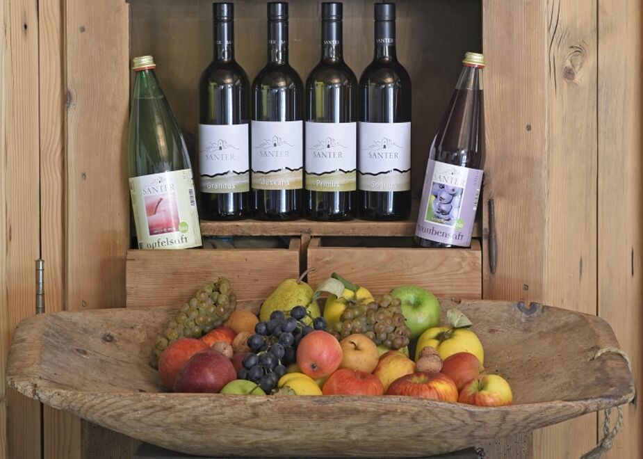 La cantina Santerhof fa parte di un contesto più ampio, quello del maso, sempre di proprietà dei Gasser: oltre ai vini biologici, infatti, qui si producono anche succhi di mela e d’uva freschi e genuini e si propone un’ampia varietà di mele, tra cui le Topaz, le Pinova e le Florina, pere, prugne, e noci la cui disponibilità cambia a seconda della stagione e che è possibile acquistare presso il loro punto vendita, sempre all’interno del maso; in aggiunta, si allevano diversi animali tra cui pecore, maiali polli e capre. Chi lo desidera, infine, può prenotare una visita guidata con Willi o con il figlio Johannes e godersi un tour alla scoperta della cantina e dell’intero maso, dei suoi vigneti e di tutti gli animali di cui si prendono cura.