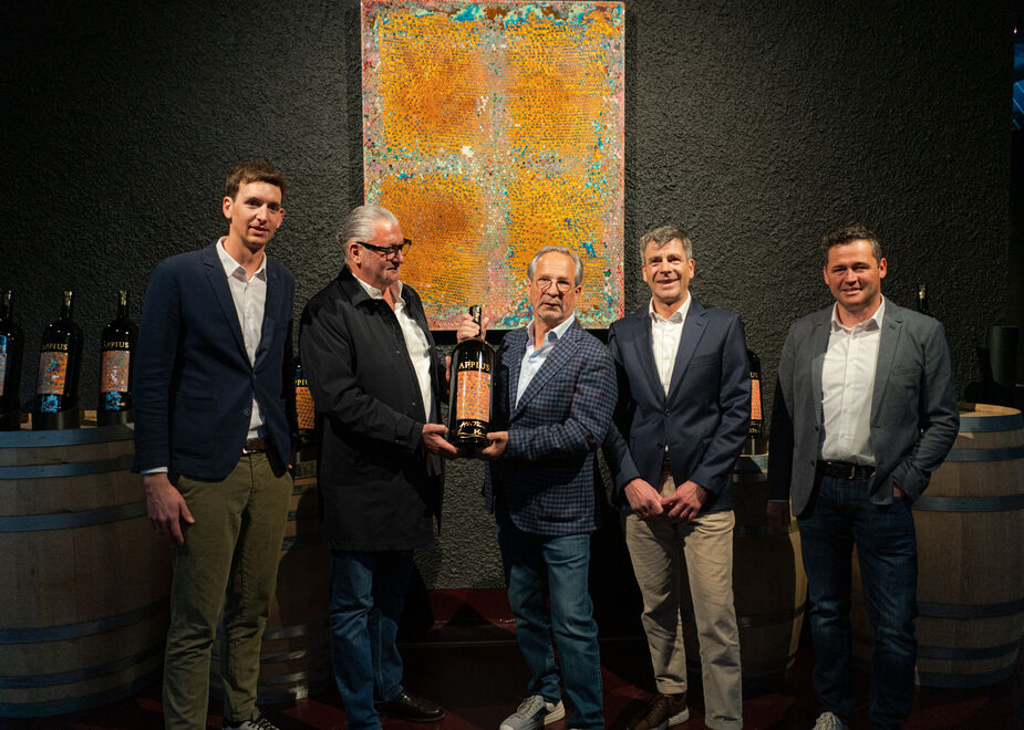 «Per una cuvée capace di stupire l’olfatto ed il palato, volevamo creare un legame con un concetto di arte visiva altrettanto potente e affascinante. Quest’opera artistica di Robert Pan ci è sembrata fin da subito il corrispettivo perfetto dell’eleganza e del carattere di APPIUS» dichiara Klaus Pardatscher, presidente della “cantina eccellenza” dell’Alto Adige nata nel 1907, con attualmente 320 soci viticoltori che operano su 390 ettari di vigneti.