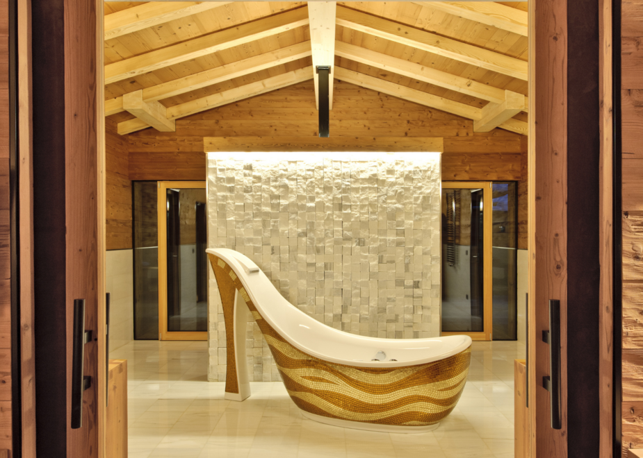 Raffinati Chalet e la vasca décolleté in marmo di Lasa