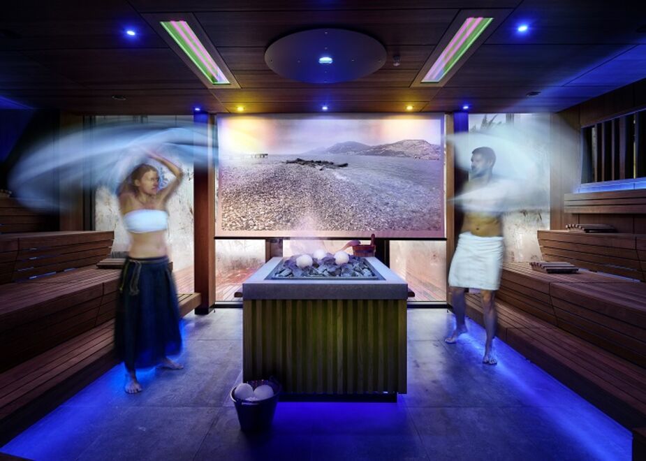 «Un Aufugss non è mai uguale all’altro, cambiano le gestualità, l’utilizzo di oli essenziali e le musiche selezionate» afferma Giuliano Grigolo, Maestro di Sauna del Quellenhof Luxury Resort Lazise. «Dal 2019, data di apertura della struttura, diversifichiamo il programma dell’Aufguss a seconda del momento, incominciando con una pratica più rilassante e dolce ad inizio giornata, per arrivare a quella delle 18 con l’aggiunta di elementi coreografici e con movenze più energiche e decise» conclude Grigolo. La base dell’Aufguss rimane l’utilizzo di oli essenziali, che possono essere quello alla lavanda per momenti più rilassanti e distensivi o quelli alla menta o all’eucalipto, con le loro proprietà energizzanti e che migliorano la respirazione; molto utilizzati e richiesti sono anche gli oli essenziali di limone e arancio. Oltre a oli più ricercati e preziosi come un ylang ylang o i piccanti zenzero e cannella. La musica come sottofondo, con l’aggiunta di elementi quali le luci e i video, accompagna le movenze armoniose e coreografiche dei Maestri che celebrano il tradizionale rito dello “Sventolatore”, ipnotizzando l’ospite che si sente letteralmente avvolto da un vortice di benessere e relax. L’aria in sauna diventa umida con gli sbuffi di vapore che si dirigono verso l’alto e creano una sensazione di calore che accelera la sudorazione e, di conseguenza, elimina le tossine. L’ultimo passaggio del rituale è il raffreddamento del corpo con una doccia o una vasca di acqua fredda. L’Aufguss è un’esperienza da provare che giova al corpo con molteplici benefici: dall’effetto tonificante e rilassante su pelle e muscolatura, agli effetti psicoterapeutici che favoriscono il senso di rilassatezza e serenità; lo sbalzo di temperatura migliora il sistema circolatorio, la pelle appare più pulita e sana grazie all’eliminazione delle tossine attraverso il processo di sudorazione che purifica i pori e rende l’epidermide luminosa ed elastica. Un modo di interpretare la sauna che ha già conquistato molti ospiti e che il Quellenhof Luxury Resort Lazise promuove e diffonde.