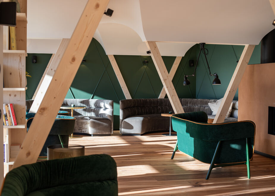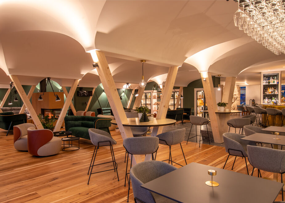 Degustazioni di vini autoctoni e viaggi nel mondo dei cocktail e degli spirits con un’ampia selezione di etichette, tra le quali l’esclusivo gin Felix Luis “made in Südtirol”. Il Lounge Bar 1981 è protagonista dell’estate al Garberhof, hotel 4 stelle superior di Malles Venosta, recentemente rinnovato in pieno stile “silent luxury”: un lusso rilassato e silenzioso, che non grida né fa sfoggio di sé, ma si percepisce nettamente nella qualità dei materiali utilizzati e nel design degli ambienti interni. I colori caldi del legno e i morbidi tessuti delle eleganti sedute rendono accogliente e confortevole questo spazio dedicato alla convivialità. Il soffitto a volte bianche è sostenuto da pilastri in legno a forma di V che definiscono gli ambienti, richiamando il medesimo motivo che decora le facciate esterne dell’hotel.
