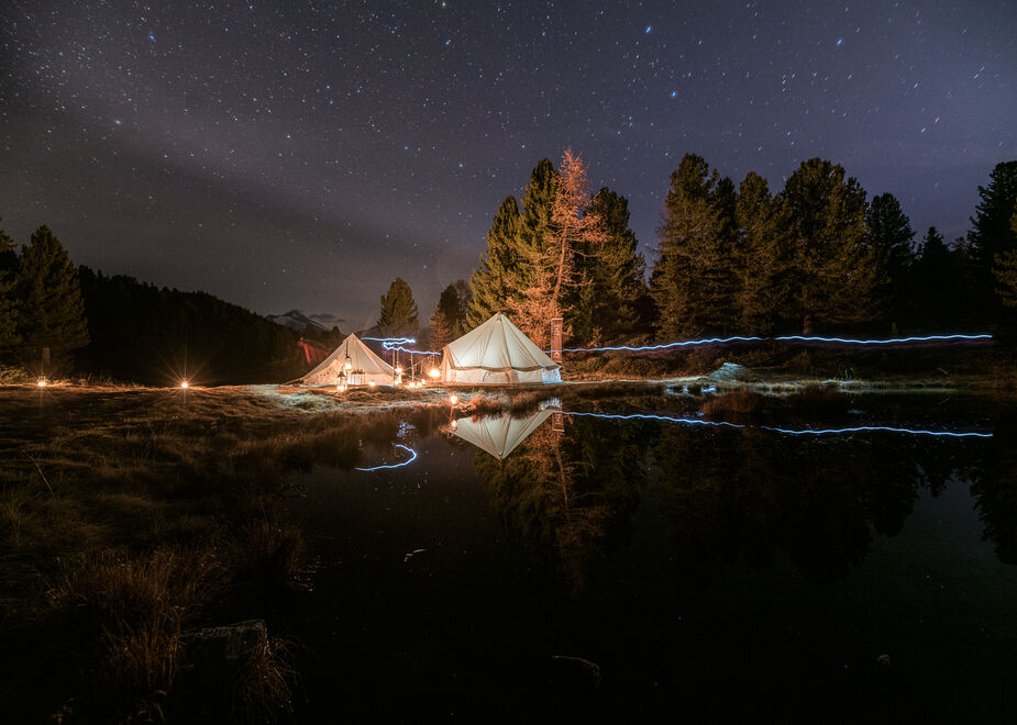 Il Glamping è un’occasione nuova per trascorrere le vacanze che si è diffusa negli ultimi anni, ma in cosa consiste più precisamente? Glamour e camping che, insieme, diventano sinonimo di vacanza nel lusso e nel comfort pur dormendo sotto le stelle, in tenda e immersi nella natura. La Valle Aurina presenta la proposta di Mountainglamp del team Kreaktiv a Campo Tures, vicino alle Cascate di Riva di Tures dove, dai suoi 846 metri s.l.m. si raggiunge, a piedi o in e-bike, un alpeggio che tocca quota 2.000; qui, circondati dalla maestosità delle Alpi della Zillertal, si degustano prima i formaggi di un maso locale assieme a un drink e ci si sposta, poi, in una spaziosa tenda in cui trascorrere la notte. La tenda è attrezzata di tutto il necessario per soddisfare ogni comfort e andare incontro alle esigenze di ciascun ospite. Il Glamping regala anche l’occasione per passeggiate nella tranquillità e nel silenzio, momenti in cui rigenerarsi in una sauna a botte o una vasca riscaldata. Al calar del sole si possono fare delle brevi passeggiate, ammirando il tramonto e lasciandosi conquistare da momenti totali di relax sotto le stelle, da qui più luminose grazie alla totale oscurità libera dall’illuminazione dei centri abitati, osservando valli e cime alla luce della luna, con intorno solo i suoni della vita notturna dell’ambiente naturale.
