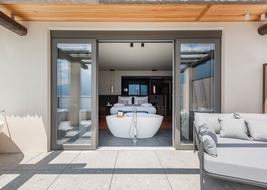 Ispirata all’acqua, questa suite di circa 85 mq è impreziosita dal color argento, Argantos appunto. Toni nature di parquet e pareti si abbinano al gres del bagno open space, mentre una lamina color argento al centro del soffitto, grazie a un particolare gioco di luci, ricrea riverberi analoghi a quelli dell’acqua e trasporta in un’altra dimensione. Letto super king size, bagno turco, Airpool e sauna panoramica sul balcone rappresentano il vero lusso di questa spa suite, disponibile in numero limitato (solo 4 stanze).
