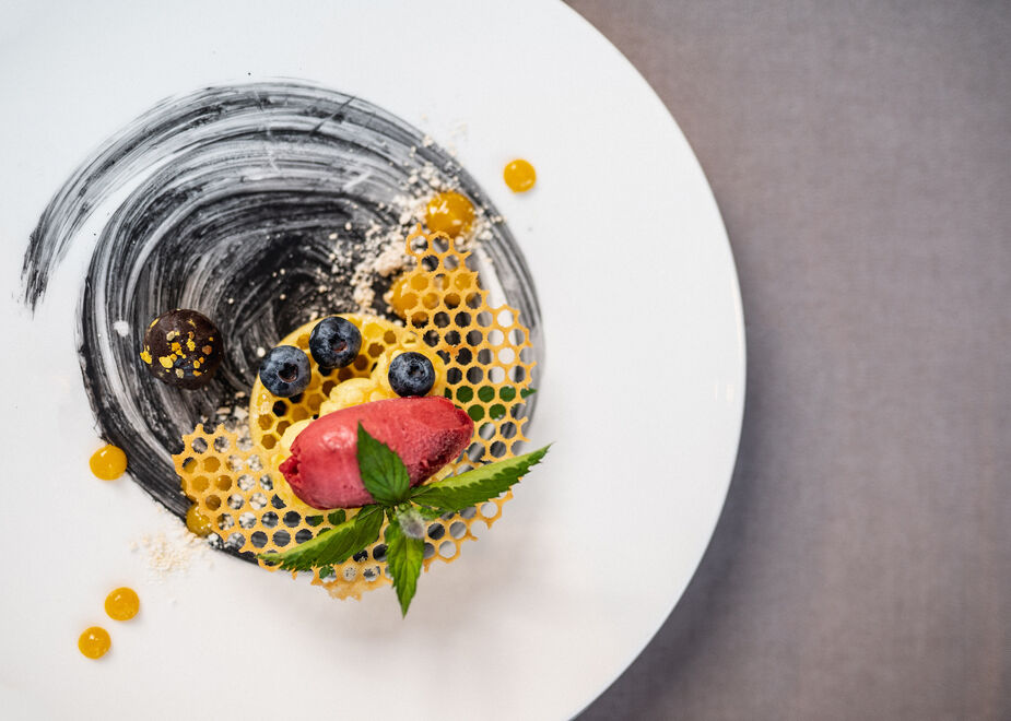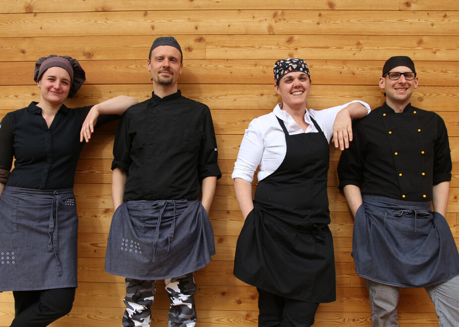 Qualità, gusto, stagionalità e regionalità sono le parole chiave che guidano l’operato dei 4 chef, ognuno con la propria specializzazione: Alessandro Salvador per i primi, Alessandro Plotegher per i secondi e Marion Mahlknecht nel reparto pasticceria, mentre Monika coordina il tutto e stila il menù giornaliero sulla base delle idee e delle proposte del team. L’obiettivo che li unisce è quello di rispettare la qualità delle materie prime, valorizzando i sapori della tradizione locale con impiattamenti creativi e colorati e – quando arriva la stagione primaverile ed estiva – i freschi profumi delle erbe di montagna.