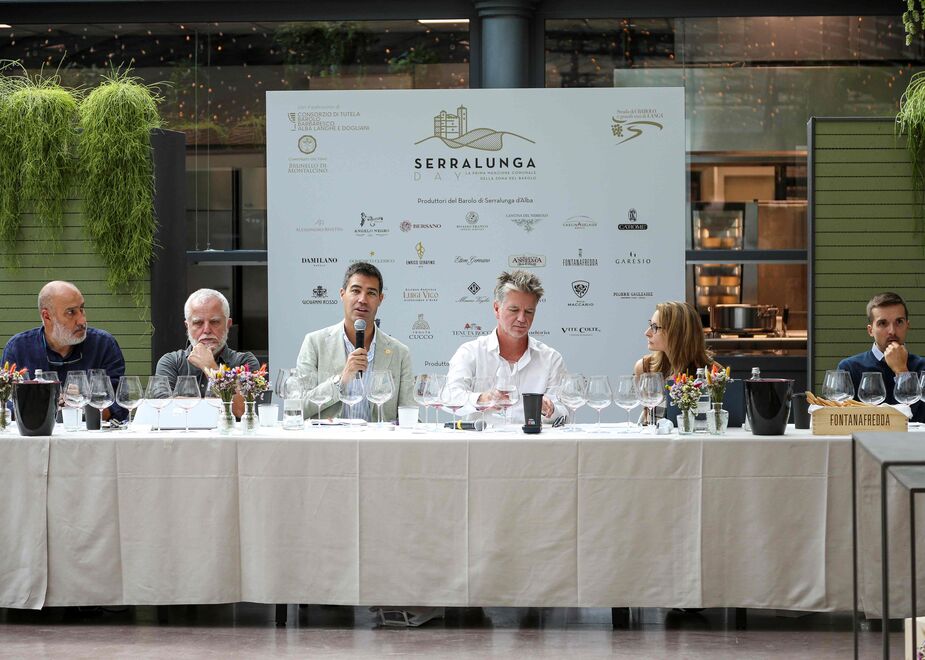 Forte anche la presenza delle istituzioni, nelle personalità di Sergio Moscone, sindaco di Serralunga d’Alba, e Sergio Germano, Presidente del Consorzio di Tutela del Barolo e Barbaresco: «Siamo entusiasti del successo dell'evento, che ha ora raggiunto la sua quarta edizione, confermando ulteriormente l'importanza di Serralunga e dei suoi produttori nell’espressione territoriale. La menzione comunale di Serralunga si distingue come una delle più apprezzate, guadagnando sempre più riconoscimento, specialmente tra le cantine e il mercato. La comunale, grazie alla sinergia dei produttori, riesce a rappresentare appieno il territorio, mettendo in luce la sua forza, struttura e capacità di invecchiamento». Inaugura la sua partecipazione all’evento Giacomo Bartolommei, il Presidente del Consorzio del Brunello di Montalcino, che ha dichiarato: «Essere presenti al Serralunga Day rappresenta per noi non solo un onore, ma anche un’opportunità preziosa di confronto e di dialogo tra due denominazioni che condividono valori comuni: tradizione, identità, longevità ed eccellenza. Montalcino e le Langhe sono territori che hanno scritto e continuano a scrivere la storia del vino italiano nel mondo. Eventi come questo rafforzano la consapevolezza che l’unione e lo scambio tra realtà di così alto profilo siano fondamentali per affrontare le sfide del futuro e per continuare a parlare a un pubblico internazionale sempre più attento e appassionato». Fra le istituzioni, era presente anche la Strada del Barolo e grandi vini di Langa: «La nostra mission è quella di promuovere il Barolo e i suoi produttori in tutto il mondo. Per questo motivo riteniamo strategiche le partnership con tutte le realtà che condividono i nostri valori e i nostri obiettivi. Abbiamo quindi voluto offrire il nostro contributo concreto a questa edizione del Serralunga Day invitando a partecipare all’iniziativa un gruppo di giornalisti europei, in visita in Piemonte per un educational tour», ha dichiarato il Presidente Lorenzo Olivero.