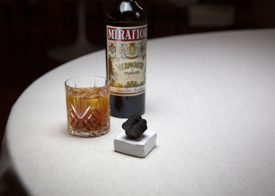 Il vino da abbinare per gustare al meglio il Tartufo Regale, è consigliato da Piero Alciati, fratello di Ugo e maître-sommelier di Guidoristorante, ed è il Vermouth Rosso Superiore di Casa E. di Mirafiore. I sensuali profumi del Vermouth, enfatizzati dalla base di vino moscato e caratterizzati dalla verve del nebbiolo, il tutto abbracciato dalla nobile presenza del cardamomo, spezia storicamente abbinata al cioccolato, trovano un connubio ideale con questa delizia artigianale che gioca di equilibri tra dolcezza, aromi e il calore del cioccolato. Abbinamento di territorio oltreché di sapori, dove Vermouth e nocciole ricreano l’atmosfera Liberty di un tempo in cui il buono e il bello divennero una raffinata esigenza di gusto ed estetica. Nato nel XVIII secolo, apprezzato alla corte reale dei Savoia ma conosciuto in tutto il mondo, il Vermouth di Torino è un vino aromatizzato di cui Casa E. di Mirafiore iniziò la produzione nei primi anni del ‘900. Oggi è reinterpretato attraverso le storiche ricette a base di 46 elementi tra radici, fiori, frutti e spezie che vengono estratti naturalmente e miscelati al vino base secondo tradizione, con l’aggiunta di zucchero e alcool. Il Vermouth Rosso di Casa E. di Mirafiore è prodotto con vini bianchi piemontesi e uve di Moscato e Nebbiolo.